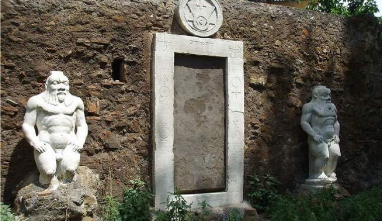 Стоит отметить, что «Портал алхимика» – это единственная дверь, сохранившаяся от старинного особняка Виллы Паломбара, которую вместе со стеной установили в 1888 г. перед открытием площади Витторио Эмануэле II, как и две каменные фигуры, охраняющие условный вход. Скульптуры, изображающие странных существ, имеющих короткие толстые ноги и гротескные бородатые лица, были найдены при раскопах у Квиринальского холма, где в древние время находился храм эллинистических богов Исиды и Сераписа. Вот его то и охраняли Бесы – древнеегипетские карликовые божества, хранители домашнего очага, которые защищали семьи (маленьких детей и рожениц, в особенности) от злых духов, бедствий и от опасных животных. Теперь они установлены в парке, как и многие другие артефакты, которые доставляются в исторические районы Рима после раскопок.