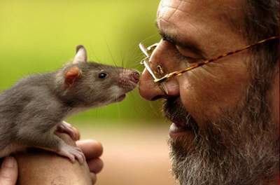 Бугор посадил на огромную ладонь Крыса и поднёс к лицу глубокомысленно уставившись на того. Крыс прыгал у него на руке и встав на задние лапки явно подавал Бугору какие-то знаки.
