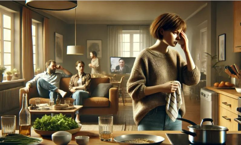На пятый день гости всё ещё были здесь. Их обещание «ненадолго» растаяло, как прошлогодний снег. В квартире царил хаос. Праздничные гирлянды на окнах поблекли, ёлка осыпалась, а атмосфера всё больше напоминала вокзал в час пик.