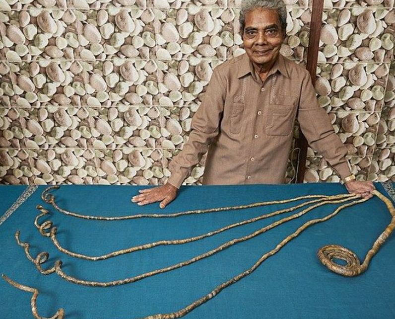 Индиец очень любит фотографировать. И ради того, чтобы сохранить свою работу и хобби он срезал ногти на правой руке. И вот, в 78 лет та же участь постигнет и ногти левой руки.