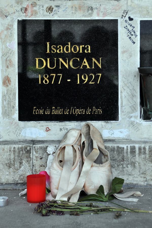 Я шел в колумбарий, чтобы посмотреть на ячейку под номером 6685, о которой речь впереди, но поднявшись на второй этаж галереи неожиданно увидел прислоненные к стене балетные тапочки и выбитое на черном мраморе имя: Айседора Дункан (1877-1927).