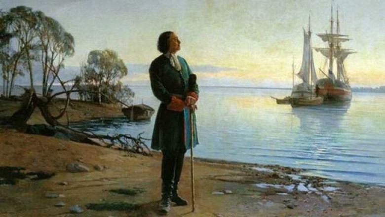 Петр I на берегу реки Невы. Картина Антона Иванова-Голубого. 1843 год