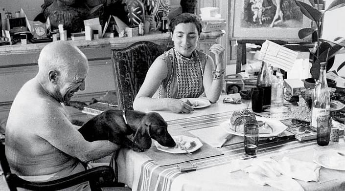 На фото: Пикассо, его жена Жаклин и его любимая такса Лумп.