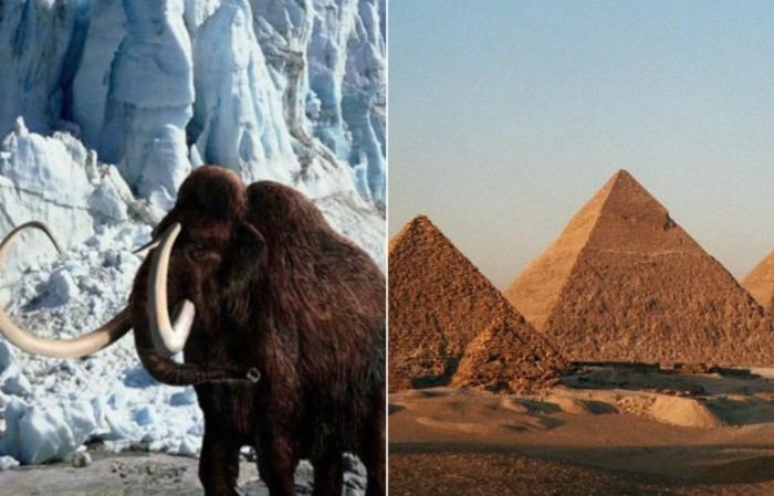 <p><strong><span style=»»>Прототипы египетских пирамид начали строить приблизительно за 3000 лет до н.э., а первые каменные сооружения в Гизе появились в 2600-2300 гг. до н. э. Мамонты же жили около 300-400 тыс. лет до н. э. на территории Евразии (в том числе в Сибири), Северной Америки, а некоторых особей находили в Китае и европейских странах. Последних древних животных истребили на острове Врангеля примерно 4000 лет назад, иначе говоря 2000 лет до н.э. Получается, что мамонты и правда могли жить в одно время с создателями египетских пирамид, но только в разных точках планеты.</span></strong></p>