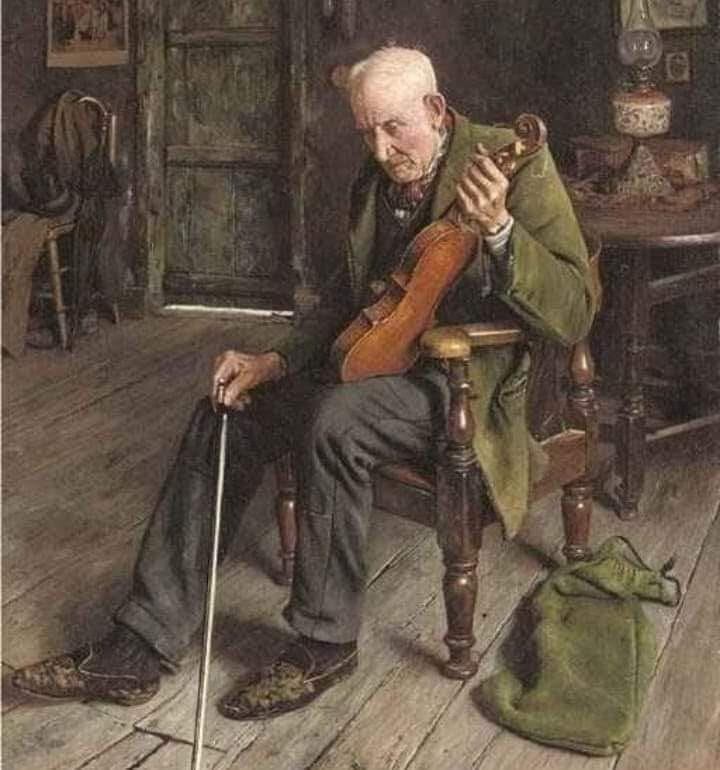 Старик целовал скрипку, слёзы огромными каплями капали на неё, он их вытирал рукавом своей старой кофты и опять целовал.