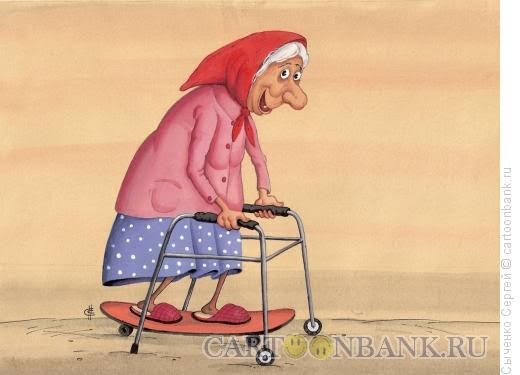 На вид всем за 80, с изящными рюкзачками, штук 10–15. С веселым щебетом, что-то обсуждая, они стали переходить улицу. Позади всех шла бабуля из той же группы, но шла медленно, потому что идти ей помогал опора – ходунок, такая конструкция для ходьбы, на которую опираешься двумя руками и толкаешь себя вперед.