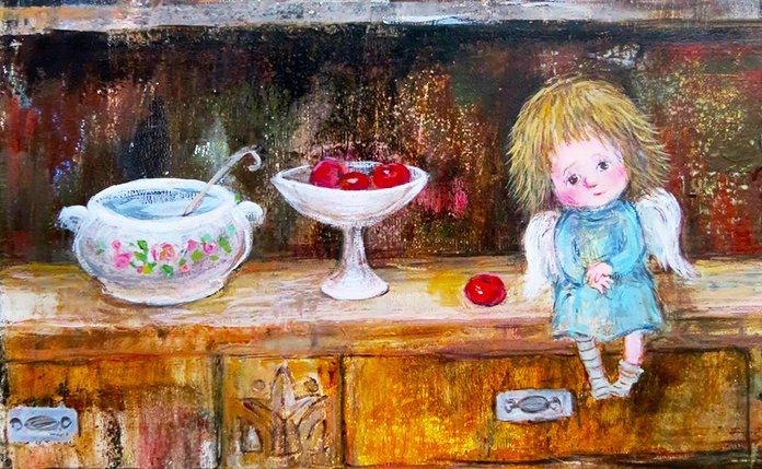 Но вернемся к маме и ножам. Когда мама заснула, я открыла чемоданчик и взяла первый попавшийся нож. Он был красивый, с голубой нарядной ручкой. Я достала из холодильника кусок твердого сыра, и попыталась отрезать кусочек. Нож остался в сыре, ручка у меня в руке. Такая голубая, нарядная.