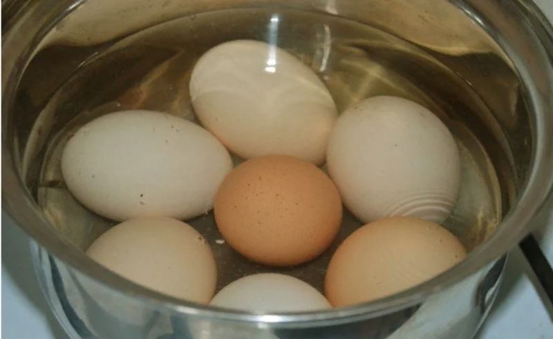 Яйца не кладут сразу в кипяток. Их помещают в емкость, наполненную прохладной водой, которая покрывает скорлупу на 2-3 см.