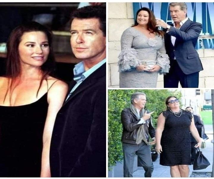 Это фото ирландского актера Пирса Броснана и его жены двадцать лет назад в начале брака и две фотографии в настоящее время…