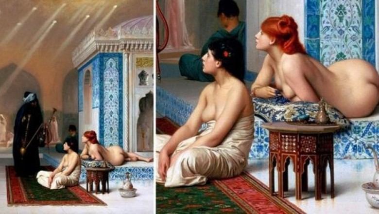 Фрагменты картины «Бассейн в гареме». Жан-Леон Жером, 1875 год.