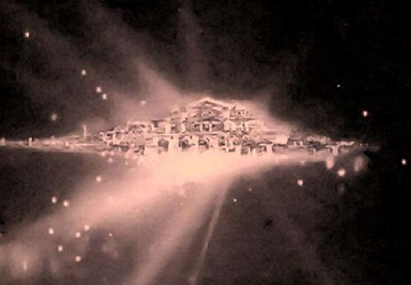 На снимках ученые увидели сияющую конструкцию, слишком правильной структуры, чтобы считать ее творением природы. О размерах ее говорить трудно. Даже «огромный» и «гигантский» никак не подходят для объекта, измеряемого в миллиардах километров. Наша планета была бы всего-навсего песчинкой на улице этого города.