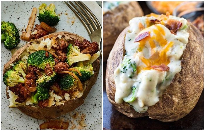 Для тех, кто не очень любит овощи, можно попробовать приготовить запеченный картофель, что будет начинён с помощью соцветий брокколи. Мягкие, рассыпчатые и нежные, они приятно ощущаются на языке и помогут разнообразить меню.