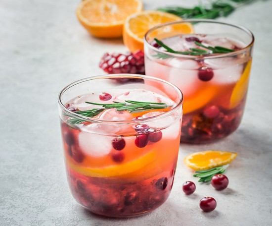 Берешь большой стакан (350 мл) мандаринового сока, два обычных стакана гранатового, 200 г клюквы.