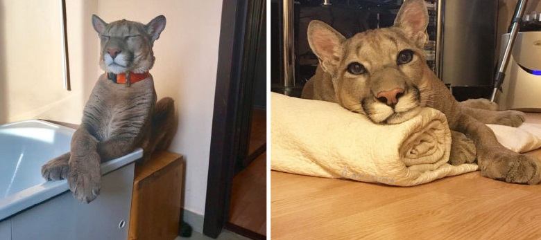 Мы привыкли считать пум котятами, но вот они требуют дрессировки как собаки. Месси различает до десятка команд, ест сырое мясо и моется в ванне.