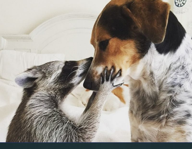 Вот так теперь выглядит прирученный енот, которого Рози когда-то нашла во дворе с поломанной лапкой