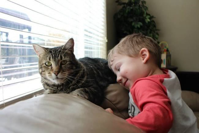 Кошка Тара героически спасла малыша Джереми, когда на него накинулась злая собака.