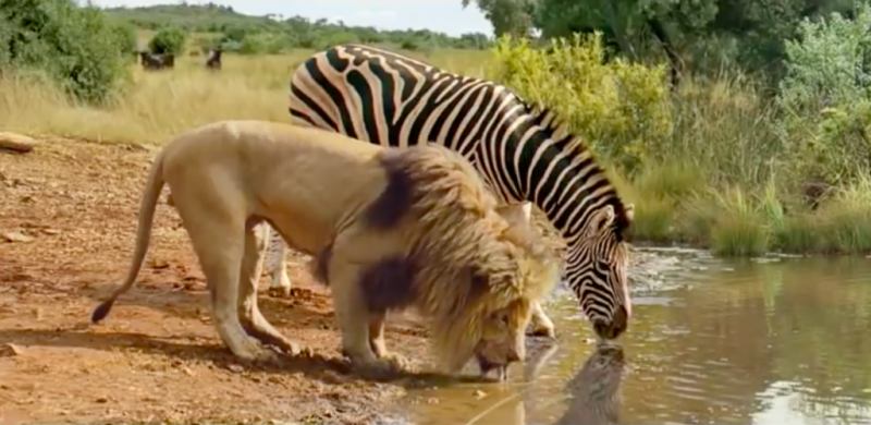 В реальной жизни зверям не знакомы такие понятия. Какие у льва могут быть причины не нападать на антилопу, стоящую к нему спиной возле и беззаботно пьющую воду?