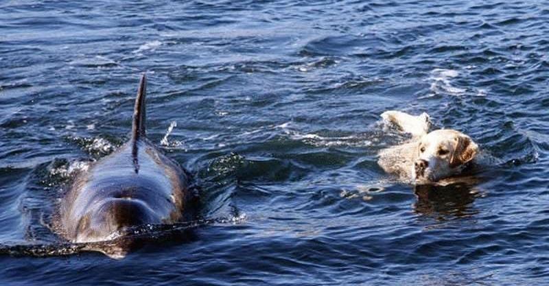 Удивительно, но дельфин ежедневно поджидает своего друга и резвится с ним в воде. Они играют в догонялки, иногда дельфин катает пса на спине.