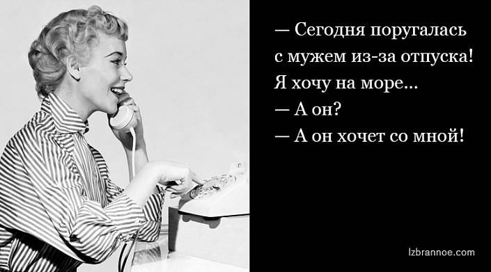 — Сегодня поругалась с мужем из-за отпуска! Я хочу на море…