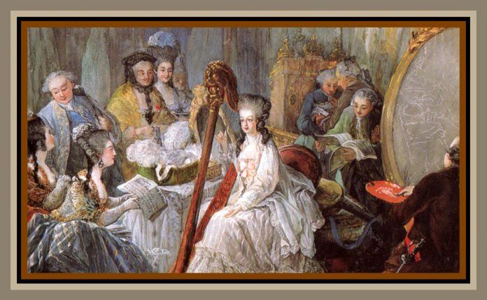 Мария-Антуанетта играет на арфе. Картина Кисти