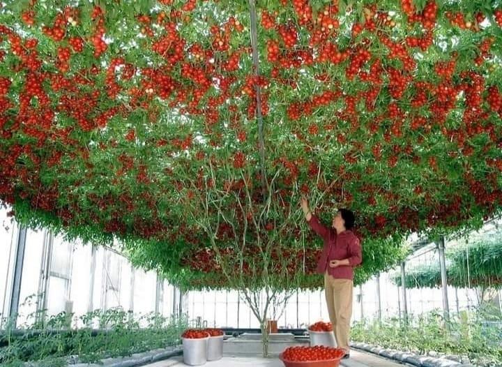 Урожай этого растения просто поражает своей цифрой: 1,5 тонны томатов или количество примерно 14 тысяч помидоров.