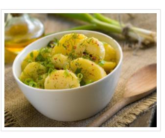 Отварить несколько картофелин, нарезать кубиками. Красную луковицу нарезать и замариновать в винном уксусе. Затем соединить лук и картофель, приправить зернистой горчицей.