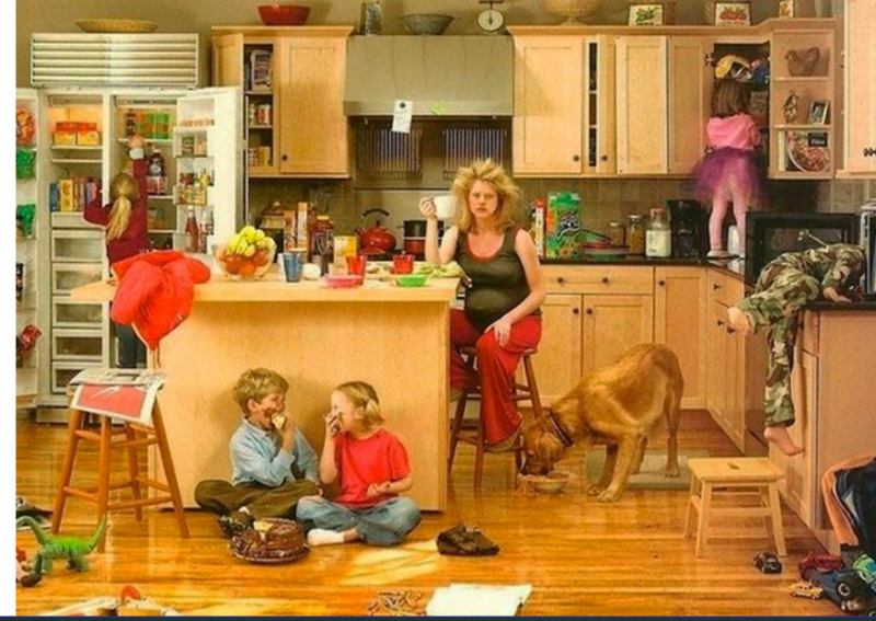 Однажды вечером, вернувшись домой с работы, мужчина увидел полный бардак. Его дети играли среди гор мусора.