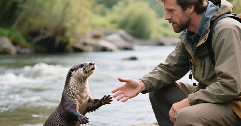 Сначала они услышали шлёп — что-то мокрое и стремительное выскользнуло из воды и запрыгало по настилу. Все обернулись. На причале стояла выдра. Самец. Мокрая, дрожащая, с глазами, полными паники и мольбы. Она не бежала, не пряталась, как делают дикие звери. Нет. Она бегала между людьми, касалась лапой чьей-то ноги, скулила тонко, почти по-детски, и снова устремлялась к краю пристани.