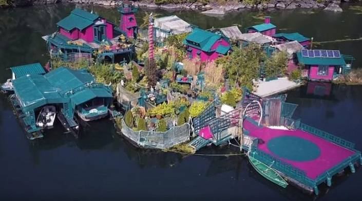 Жизнь на плавучем острове На платформе есть дом, художественная галерея, танцевальная площадка, завод по производству свечей, теплицы и даже иск Источник статьи журнал Новости в фотографиях, у которого все копируют контент — BigPicture.ru усственный водопад. Электроэнергию островитяне получают от солнечных батарей, а отходы утилизируют в особом плавучем контейнере, плавающем рядом.