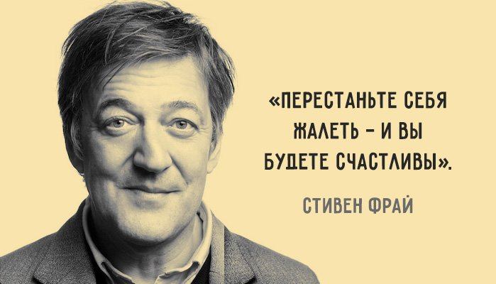 Однажды я чуть было не издал книгу в жанре полезных советов. Она называлась бы «Стивен Фрай — о том, как стать счастливым: успех гарантирован!». Люди, купив ее, обнаруживали бы, что она состоит из пустых страниц, и только на первой написано: «Перестаньте себя жалеть — и вы будете счастливы». А остальные страницы предназначены для рисунков или записи интересных идей, — вот какая это была бы книжка, причем чистая правда. Так и хочется воскликнуть: «О, как все просто!»