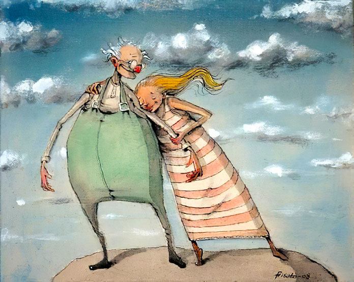 Свитер она связала со снежинкой, понимаете? Долго вязала. Красный свитер и снежинка на груди большая. Вручила подарок, покраснела и убежала. А он догнать не мог, – от потрясения.