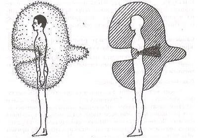 На рисунке 1 показан достаточно типичный вариант деформации поля, который может быть причиной широкого спектра проблем: от легкого дискомфорта до тяжелых физических патологий. Чем глубже граница поля «вдавлена» в физическое тело, тем тяжелее соответствующая деформации патология органов и систем физического тела, и чем шире диаметр «вдавленной» зоны, тем большее количество систем и органов поражено.