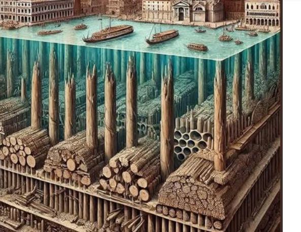 Одна только Кампанила Святого Марка стоит на 100 000 свай, в то время как величественная Базилика делла Салюте потребовала более миллиона стволов.