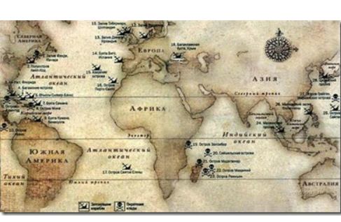20. Сейшелы: о-ва Фаркуар, Альдабра, Провиденс, Маэ. Сейчас здесь ведутся поиски кладов французских корсаров.