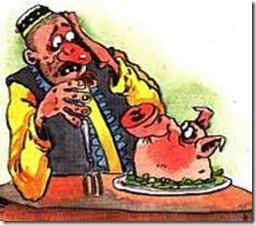 По всей вероятности, это выражение связано с тем, что некоторые народы по религиозным соображениям не едят свинину. И если такому человеку незаметно подкладывали в пищу свиное мясо, то этим оскверняли его веру.