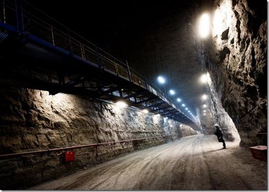 14. Благодаря прочности добываемой породы, нет необходимости прокладывать в шахтах тюбинги или как-то укреплять своды тоннелей.