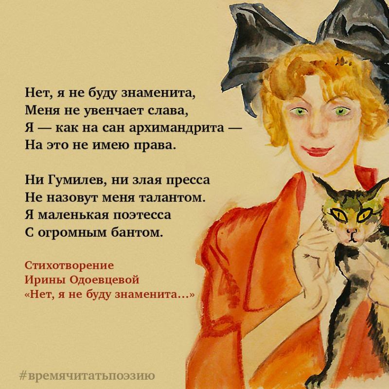 Ирина Владимировна Одоевцева — это псевдоним. Ираида Густавовна Гейнике, дочь адвоката, родилась в Риге в 1895 году. У нее были домашние учителя, затем она училась в гимназии, затем был первый муж, некто Попов, не оставивший следа в истории, и переезд в Петербург, и стихи. Когда писание стихов вошло у Ираиды в привычку, она взяла псевдоним и стала Ириной Одоевцевой.