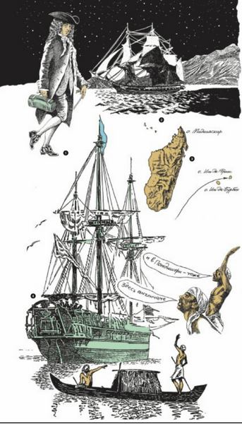 2. На корабле «Беррье» Французской Ост-Индской компании Лежантиль добрался до острова Иль-де-Франс в Индийском океане.