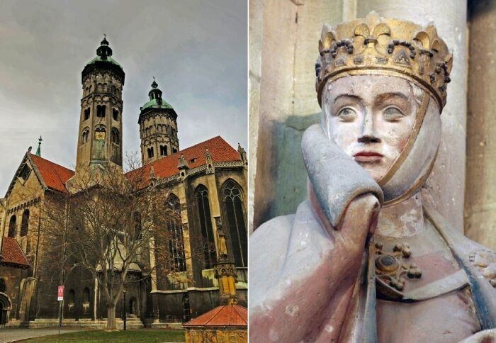 Эта статуя, действительно, очень известна, и её фото можно встретить и в путеводителях, и в культурологических журналах. Каменная незнакомка – ни кто иная как Ута Балленштедтская, жившая в XI веке. Помимо того, что скульптура признана шедевром Средневековья, с ней связан и другой любопытный факт. В гитлеровской Германии именно каменную Уту считали эталоном женской красоты.