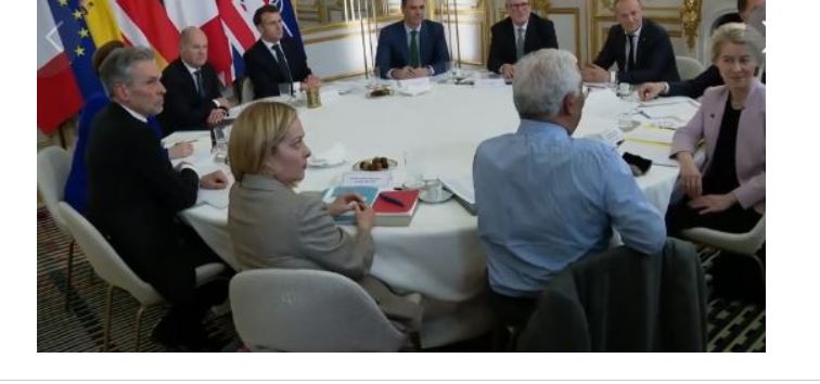 На встрече в Париже, организованной президентом Франции Эммануэлем Макроном, также присутствовали премьер-министр Италии Джорджа Мелони, глава правительства Нидерландов Дик Схоф, председатель Еврокомиссии Урсула фон дер Ляйен, председатель Европейского совета Антониу Кошта и генеральный секретарь НАТО Марк Рютте.