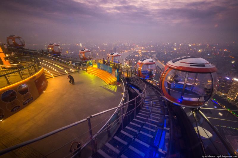 02. Смотровая площадка. По периметру башни двигаются кабинки.