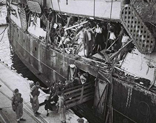 «Эксодус» был отбуксирован в хайфский порт. «Черный, потрепанный, разбитый пароход, – так описывала его американская журналистка Рут Грубер, ставшая очевидцем событий. – Корабль выглядел, как спичечный коробок, разодранный щипцами. В отверстии мы видели мешанину из подстилок, скарба, сантехники, сломанных труб, переполненных туалетов, полуобнаженных мужчин и женщин с детьми…»